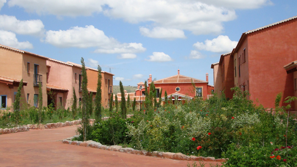 Un conjunto hotelero que recoge el carácter rural por medio del empleo de soluciones constructivas y volumétricas utilizadas en la arquitectura popular de la zona y cuidado especial en el diseño y acabados con amplios salones y porches cubiertos.